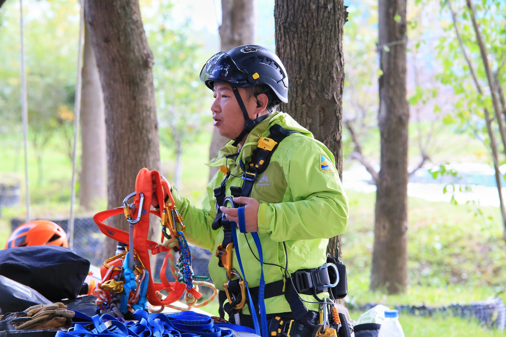 开始由云南省山地救援队的6位队员完成演练,接着老师总结和学员提问讨论,以求达到更好的融会贯通。接下来,就是学员实际操练,在各位老师的指导之下,安全顺利地完成了任务。