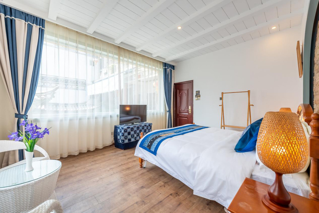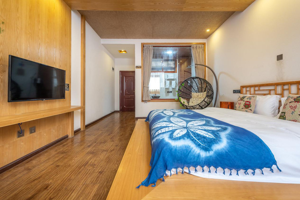 我订的是归园田居大床房,一进去房间就看到房间精致的装修,有着白族特色的装饰,房间布置得让人很舒服,很有人情味。房间很大,热水壶、衣架等设施也很完备。