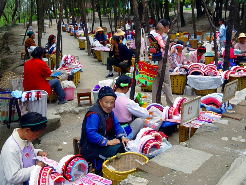 早已迎候在站外的白族导游热情地向远道而来的游客们问好。也许是电影的魅力,或是白族传统习俗,在这里青年男女的称谓分别是阿鹏与金花。就像在石林称彝族姑娘为阿诗玛一样,阿鹏与金花也成了大理男女青年的专有名字。