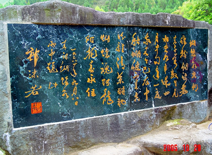 郭沫若1961年游览时,手书“蝴蝶泉”三个大字,镌刻于泉边的坊石之上。可惜由于蝴蝶泉正在整修,游客们未能在此留张影。
