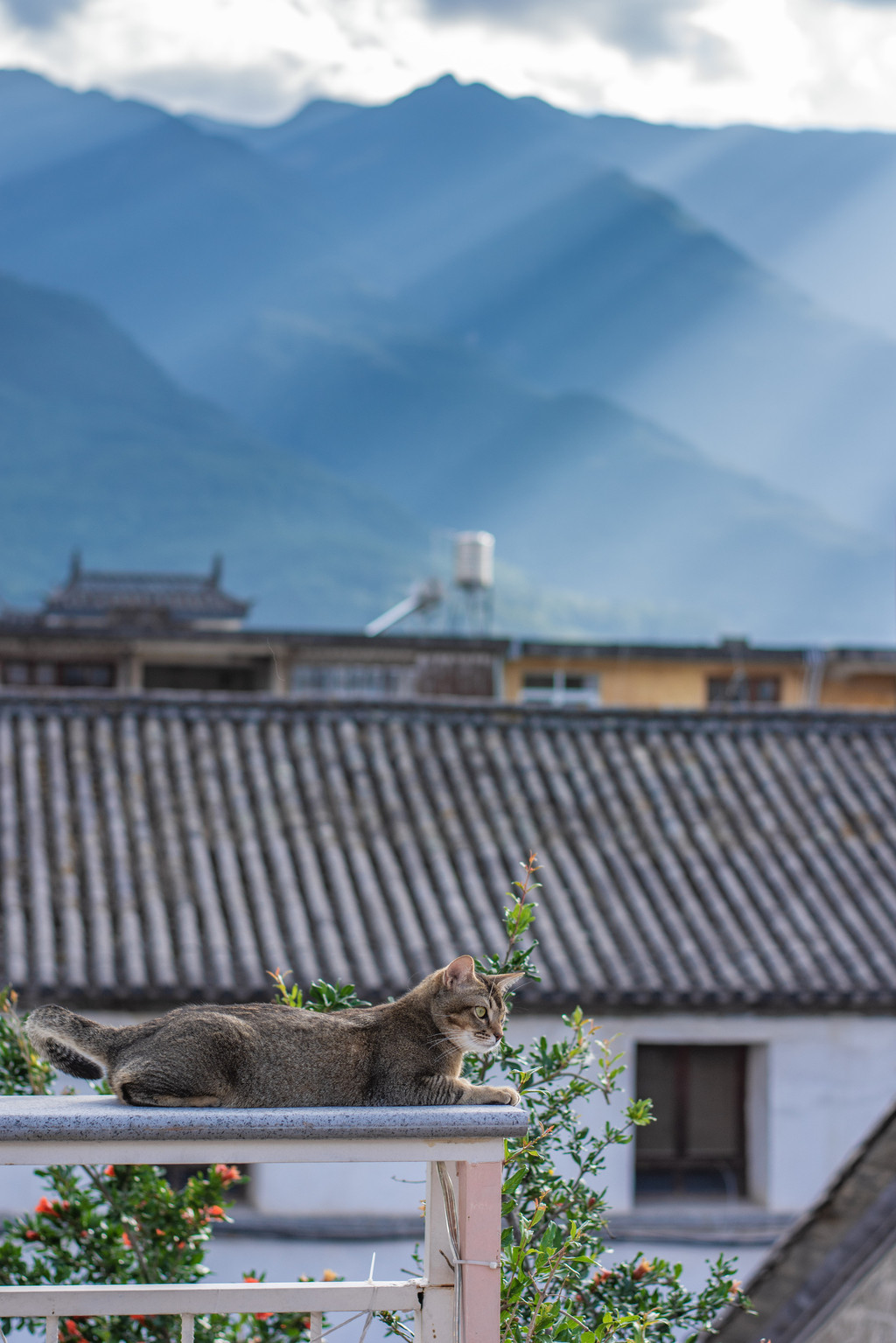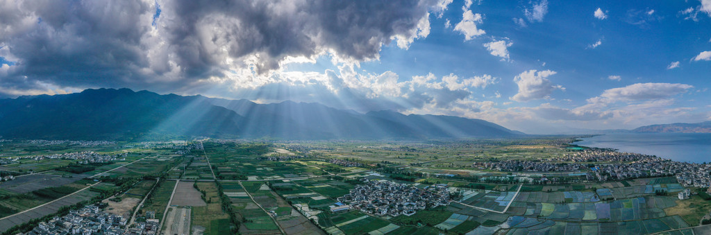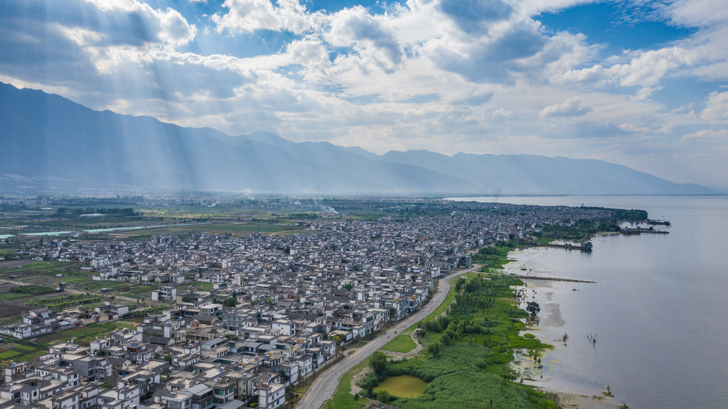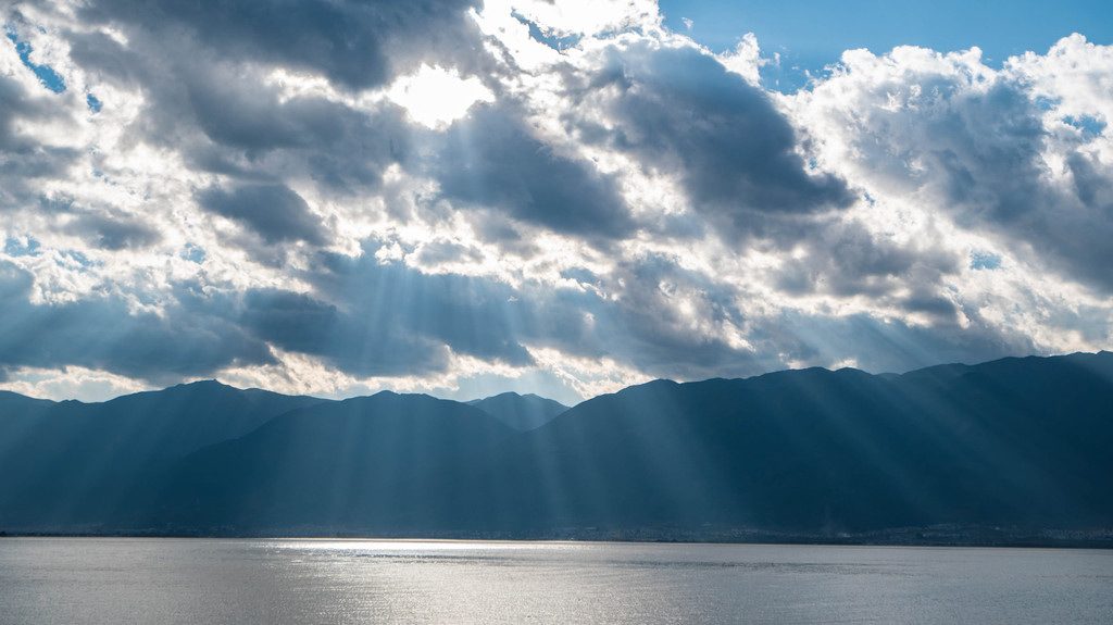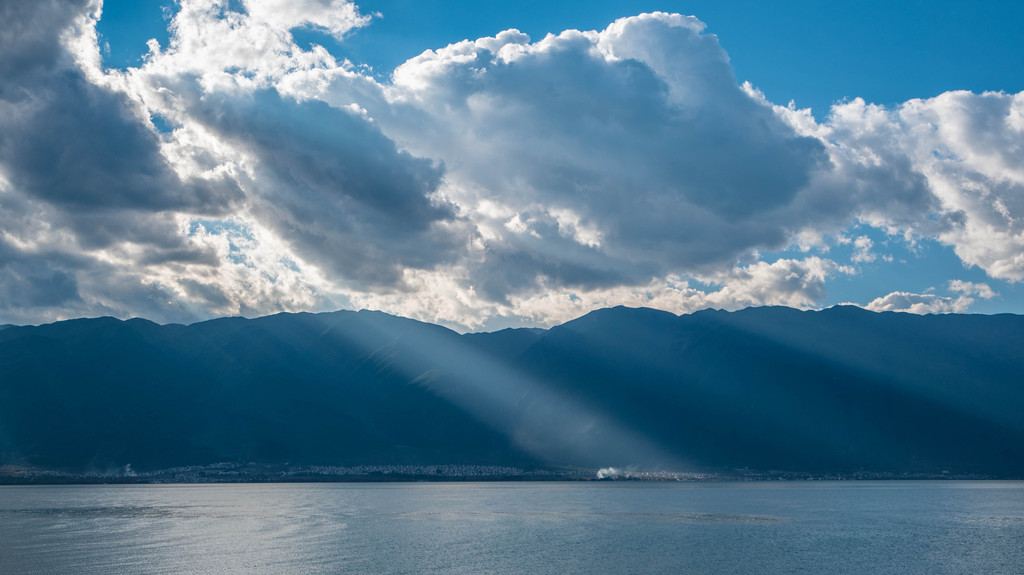 从南国步行去古城,约15分钟的时间。远眺午后前的苍山,一条云带笼罩山顶,就像覆盖于山尖的白雪。太阳透过云间的缝隙洒向大地,在内地被视为奇观的耶稣光在大理仿佛是一件平常至极的事情。这样的场景,从海东望向海西或以无人机的视角去看尤为壮丽。