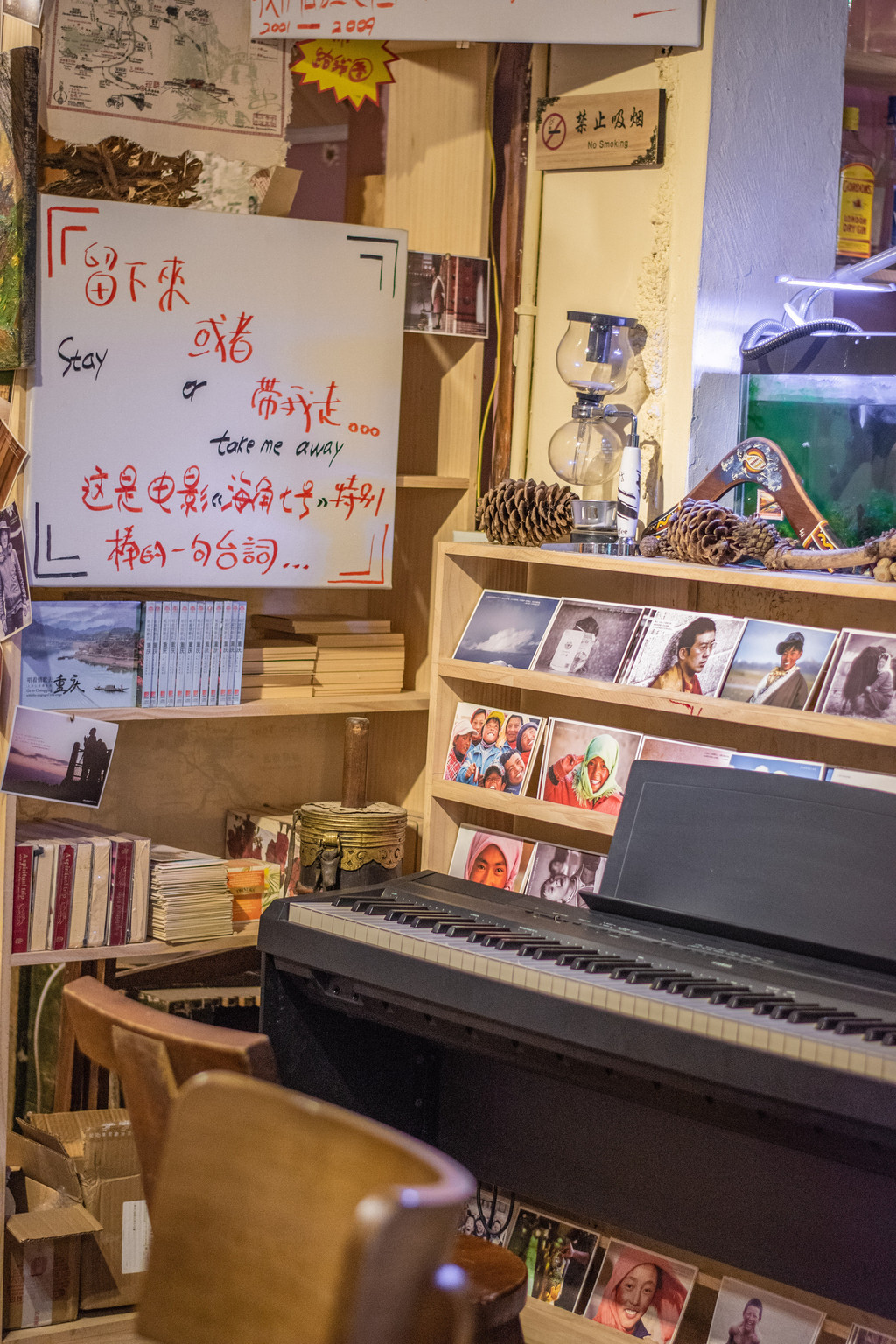 书店里的书籍选品都非常有在地文化的特色。同时,与当地文化结合所创造的文创产品是书店里最大看点,甲马、瓦猫、扎染等文创产品,做工和出品都很赞。当然,书店里的诗歌塔是一定要去打卡的。