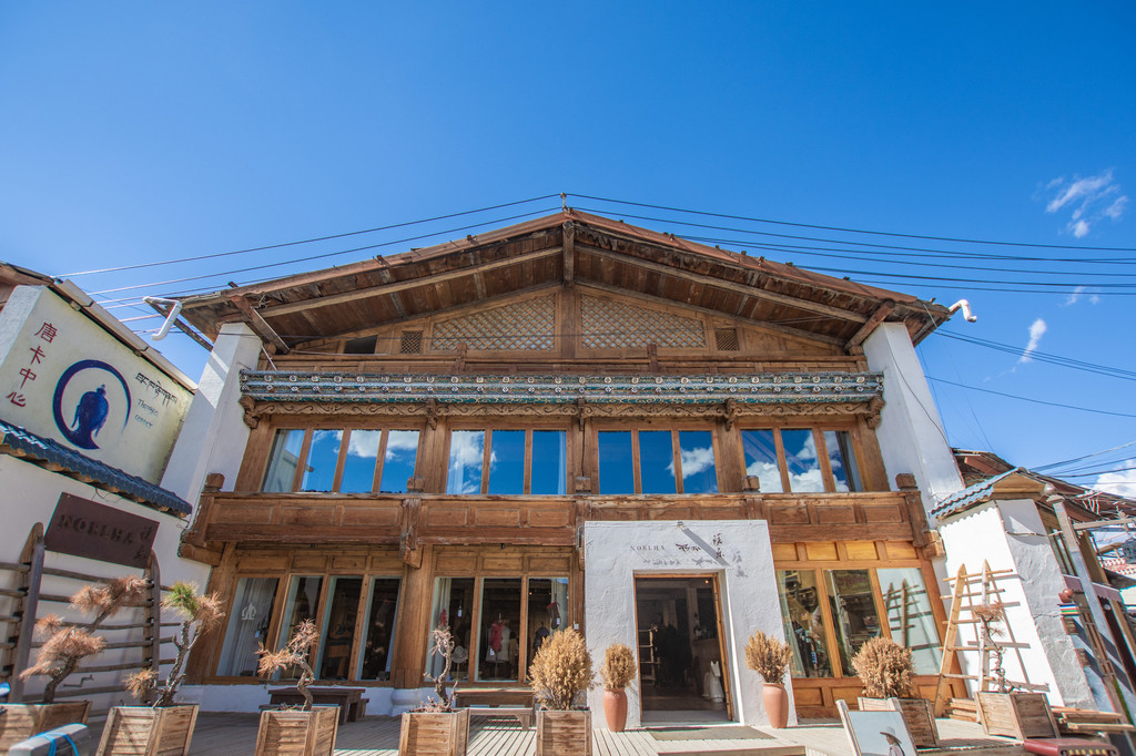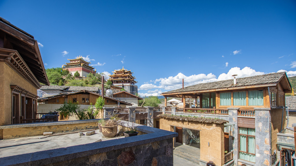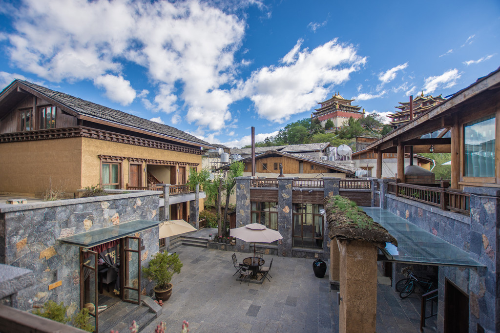 坐在阿若康巴的露台上,不远处就是大龟寺的主殿,金光灿灿的在蓝天下显得格外的醒目。香格里拉阿若康巴·南索达庄园,扎巴先生的连锁品牌。建筑风格依旧以藏式,纳西建筑为主,内部装修和丽江的风格也不会有太大的差别。店内餐厅、酒吧等设施配套也是非常的完善。
