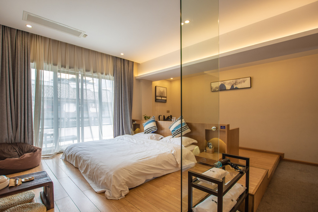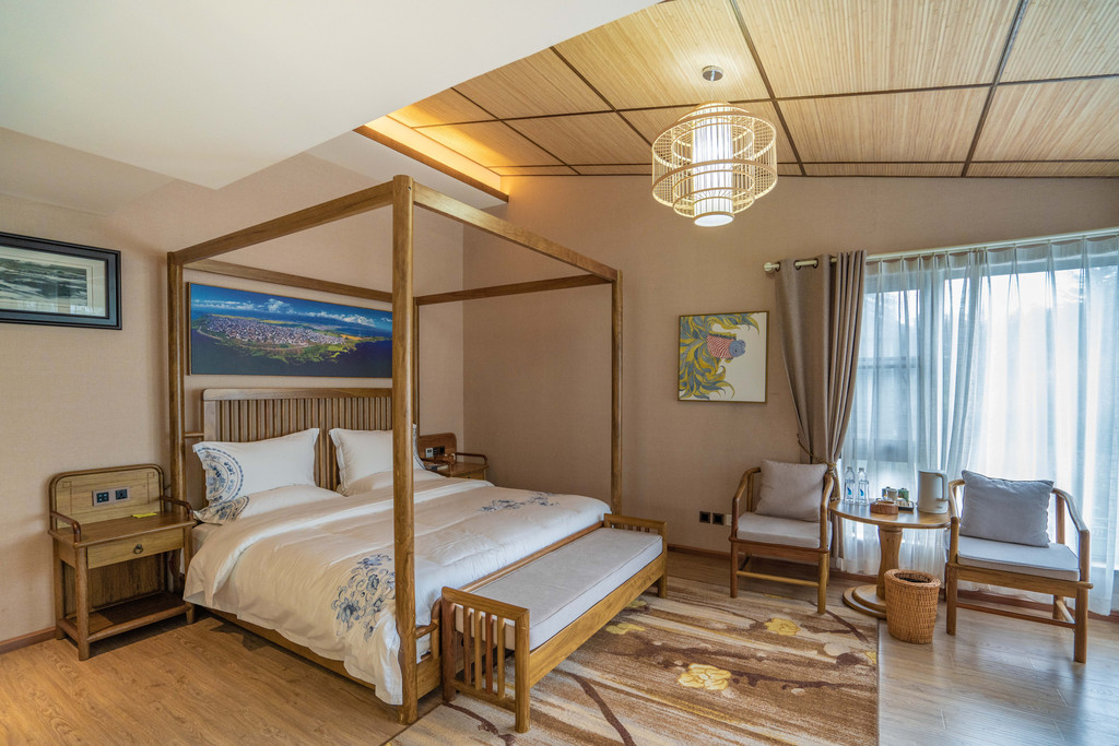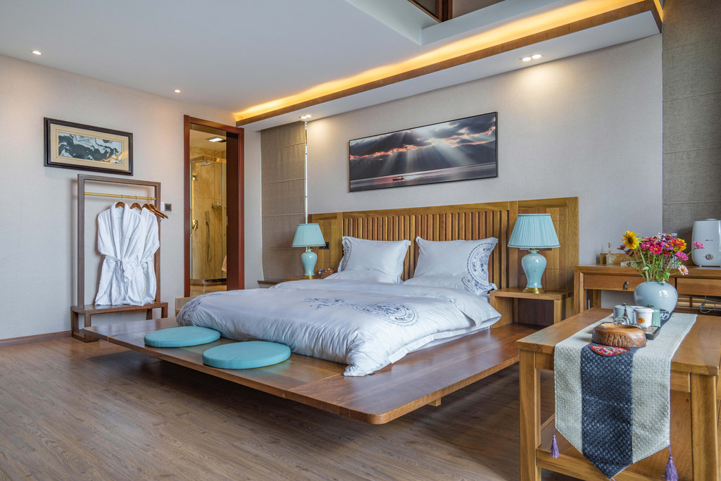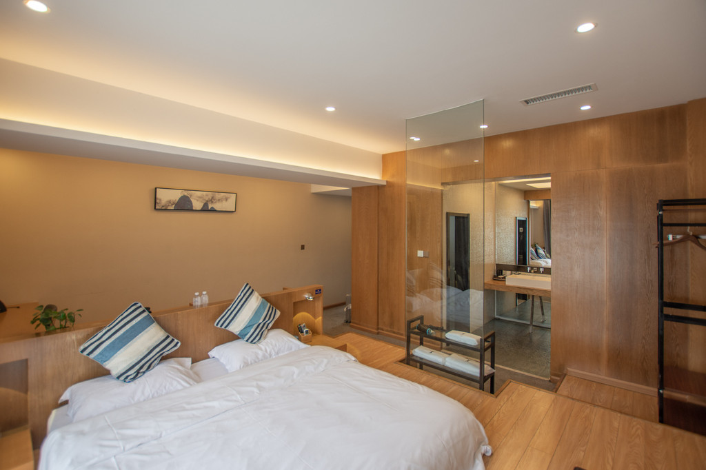 住进一间55平的豪华观景房,虽说是民宿,但却可以享受着五星级的入住体验。客房的床品、卫浴设施等相关设施设备都是对标五星酒店的标准,可以说有过之而无不及。管家式的服务更让人有回家朋友家中做客的亲切感。