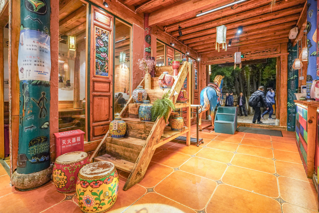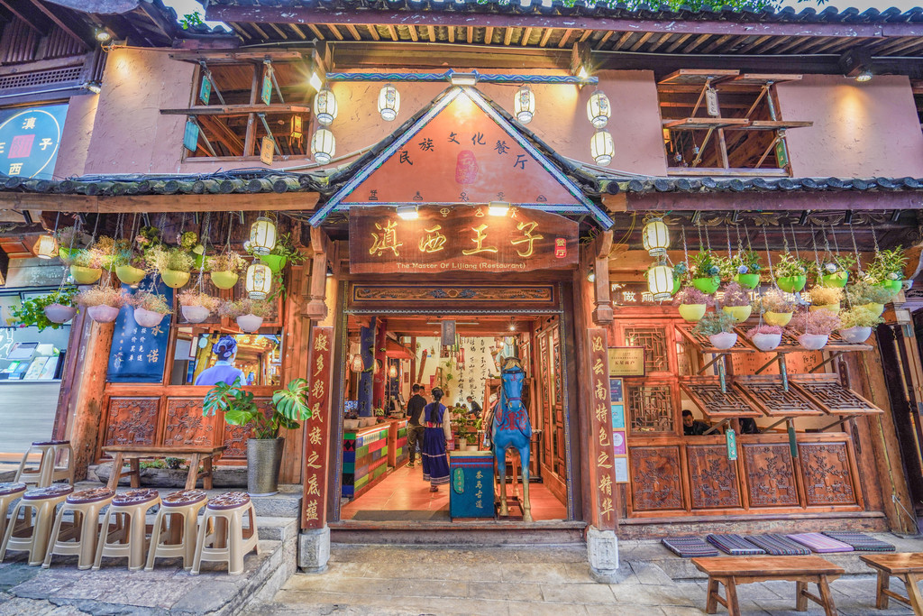 餐厅的装修就同丽江古城一样,古色古香。店内的装修在许多细节上都展示了云南多民族的文化特色,餐厅里的楼梯我非常喜欢,很适合拍照。滇西王子11点开始营业到晚上的10点,折柳车子是开不进去的,只能选择步行。从古城的东北门进入,步行几分钟就能在路边看到这家餐厅了。