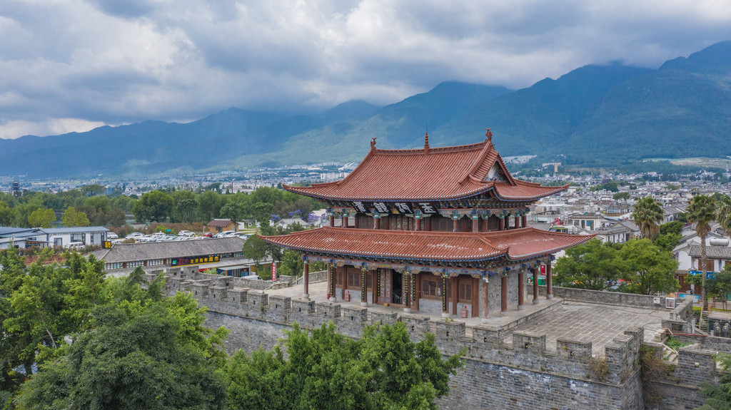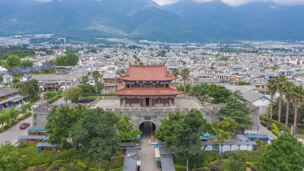 大理古城不限飞,距离机场远,周边也没有禁区。不过飞行时要注意不要低飞,还有就是来自山间的风。飞上高空,古城全景尽收眼底。苍山门、东南门、洱海门(东门),显得格外的醒目。尤其是东门,据说以前它就立于洱海边上,由于地势和水资源的变化,洱海面积萎缩也就有了如今的地貌环境。
