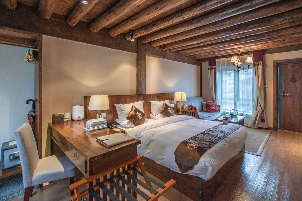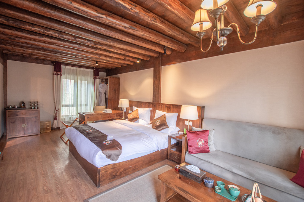 阿若康巴·庆云庄园,是以纳西,藏式建筑特色的民宿。民宿内的装修也体现了非常浓郁的民族风格,当然也很好的体现了现代化的舒适享受。