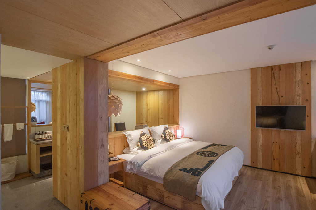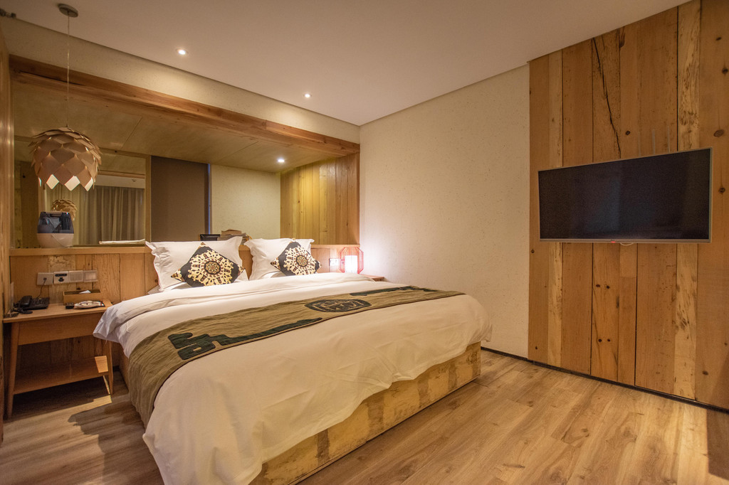距离古城500米的距离,密湾小镇是一处安静的所在,南国客栈就位于其中的一处白族风格建筑里。客栈的房间不多,十余间。一间轻奢蜜月大床房,35平的空间里结合了日式及北欧清新简约的风格,很轻松也非常温馨。客房里采用了星级酒店标配的床品以及定制的洗浴用品,虽说是民宿,但服务及设施都还是非常规范和标准的。入住的夜晚,你还会收到民宿提供的一杯热牛奶,早餐在民宿的一楼大堂里也有供应。