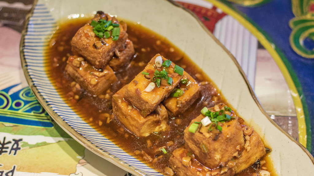 最推荐的菜品就是滇院包浆豆腐了,40多块钱的包浆豆腐是我最推荐的一道菜,过过油的豆腐外皮口感非常丰富,咬开后是嫩嫩的豆腐,加上秘制的酱汁,味道很赞。这道菜非常适合下饭,尤其是淋在豆腐上的酱汁。