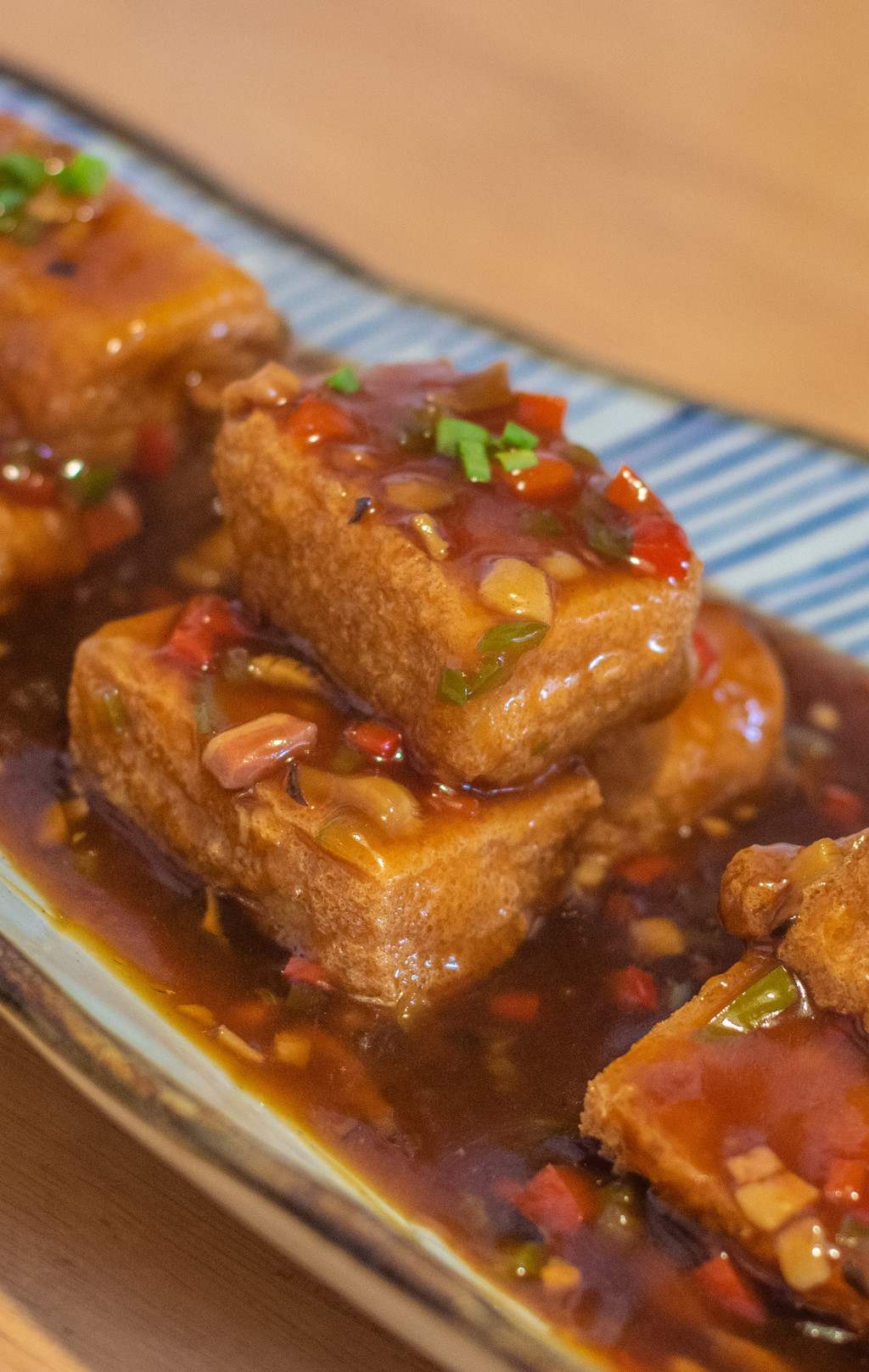 虽说是云南菜餐厅,其实它们家还是融合了非常多川菜和粤菜的做法,比较容易被大众接受。这样的餐厅在旅游目的地确实生意比较好做,口碑也非常容易起来。招牌菜阿妹包浆豆腐别看外表有点臭豆腐的感觉,其实是鲜嫩的豆腐经过油炸之后再勾芡特调的酱汁,非常下饭味道也很好。豆腐的块头也很大,整道菜的份量很足。