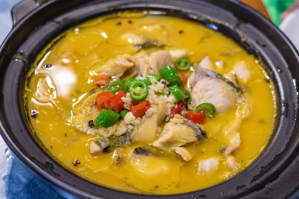 招牌百香果酸辣鱼,新的酸辣鱼做法,百香果的酸味是一种天然的酸味,而且带着淡淡的果香,非常开胃。玉米粑粑,算是主食,也可以说是甜点吧。玉米面做的,有点面包的感觉。这道菜的做法还是老板家自己研制的呢。