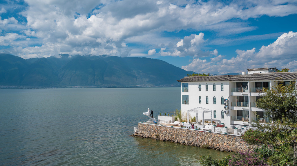 除了秀丽的自然景观,双廊的人造网红打卡点才是让其火爆网络的第一杀器!海边的民宿,天空之镜,几乎每位到大理来的游客都有在这些地方打卡一次的想法。所以即使在大理古城游人稀稀拉拉的日子里,双廊也是有着非常可观的游客量。在双廊,是看日头从苍山之顶落下去的地方,今晚我们要去住的地方,是能看见日头升起的即见-苍海宿集。