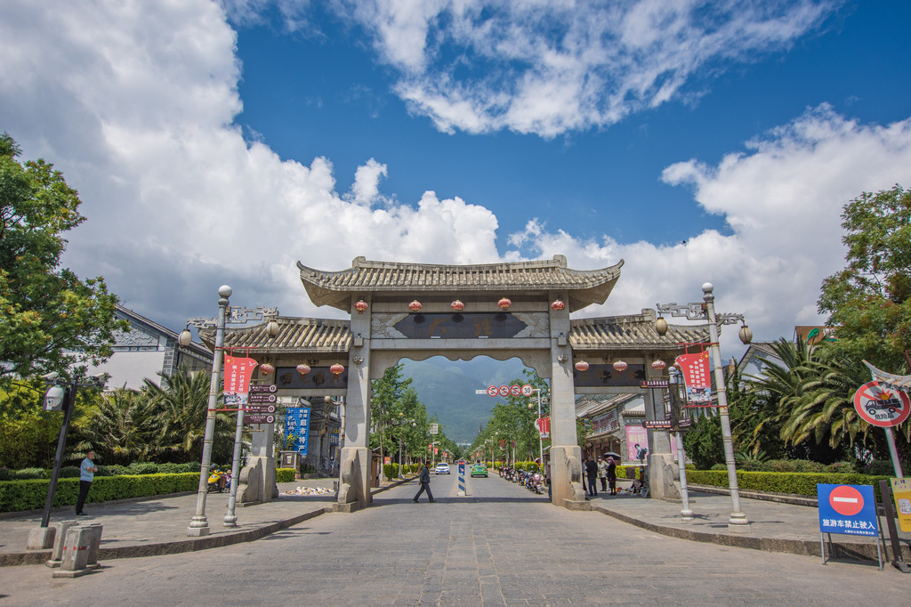 从古城出发,去喜洲的距离不算远。开车的话,沿着大丽线半小时就能到了。如果你不会开车,在古城边上也有去喜洲的公交车,7块钱一个人,注意价格就是7块!!喜洲古镇,是云南省著名的历史文化名镇,是老舍先生口中“体面古镇”。