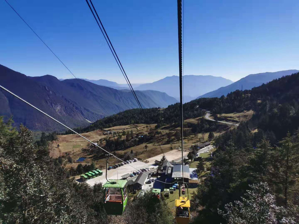 牦牛坪索道的车厢蛮简陋的,上面风超大很冷,也没看见牦牛,我们稍微走了走就下来了。