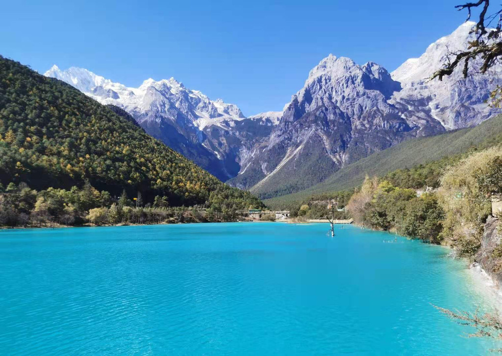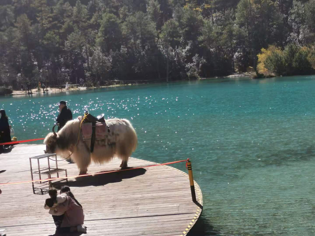 蓝月谷的风景很美,说是晴天水是蓝绿色,阴天会是乳白色,因为里面有矿物质。有很多新人在那儿拍照