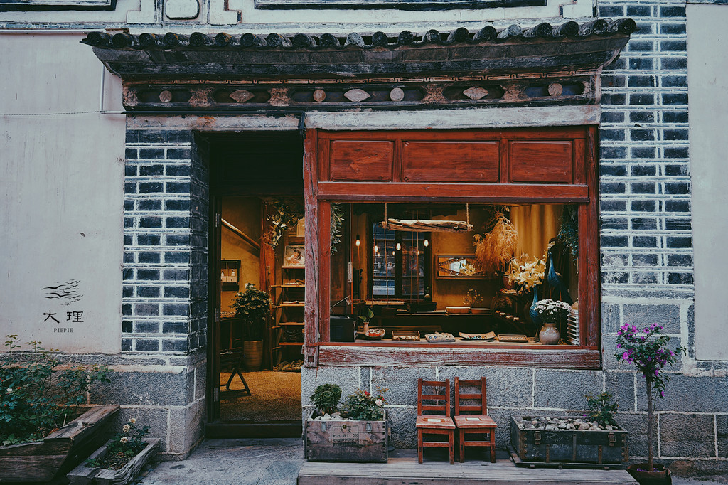 清晨的古城几乎看不到什么游客,街边的小店也只是零星的有几家敞开大门。