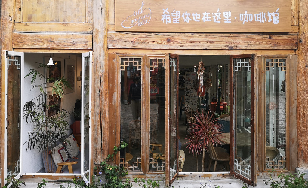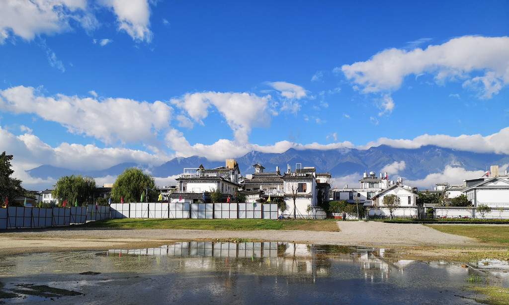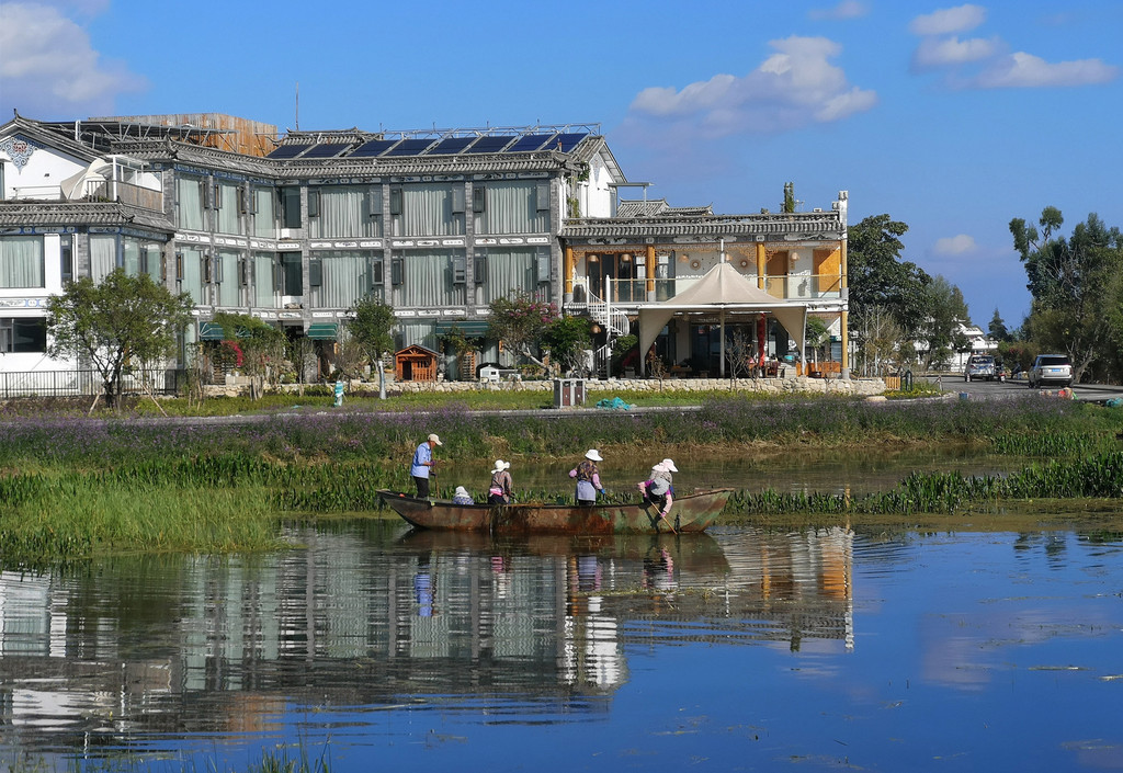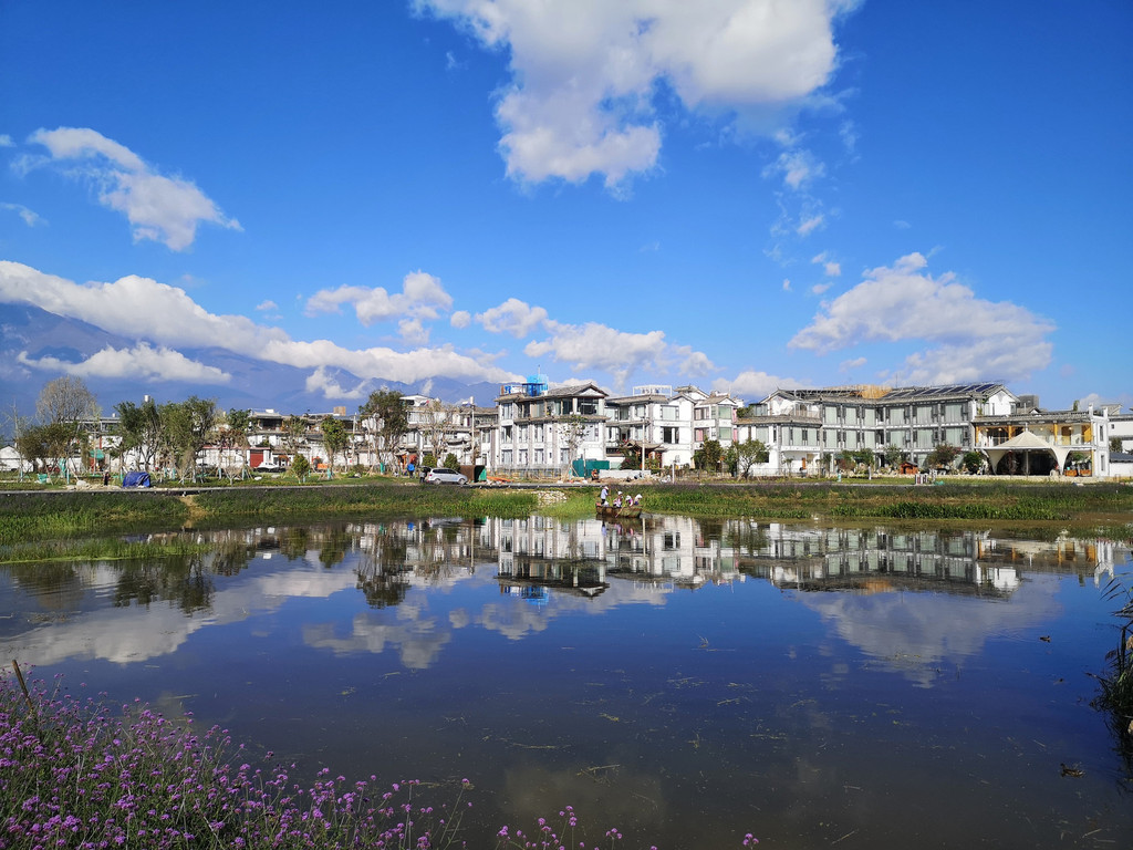 茈碧湖出发,下午3点到达大理积木.良品新宿客栈,车停在小河对面。