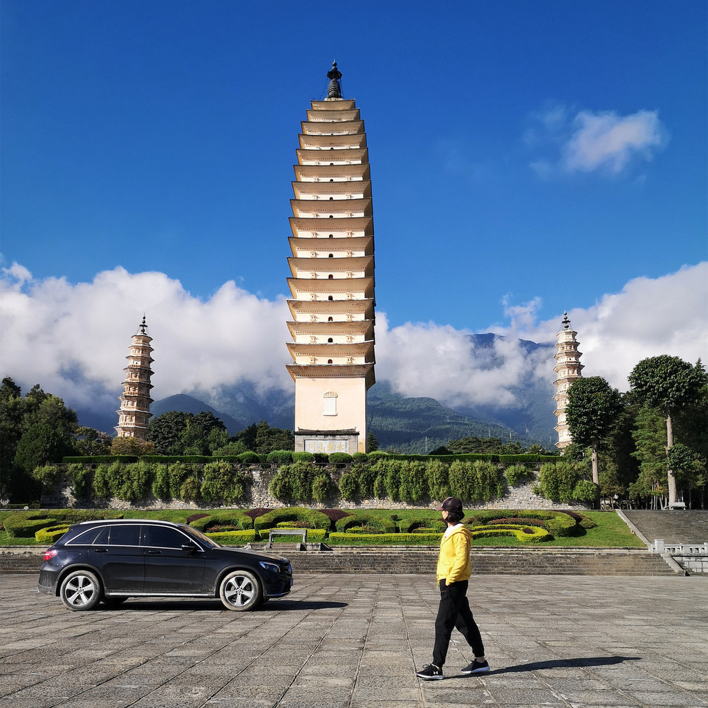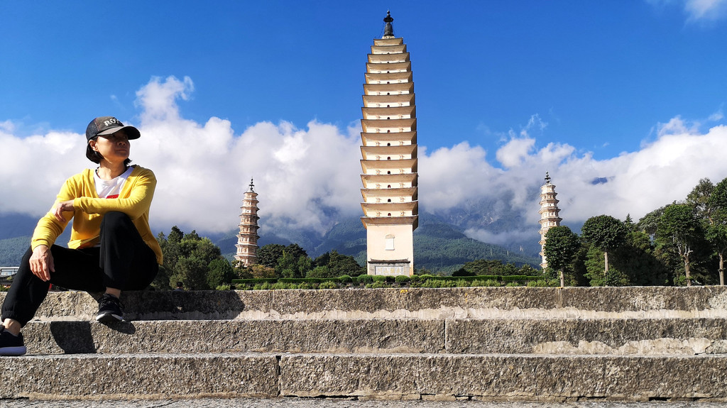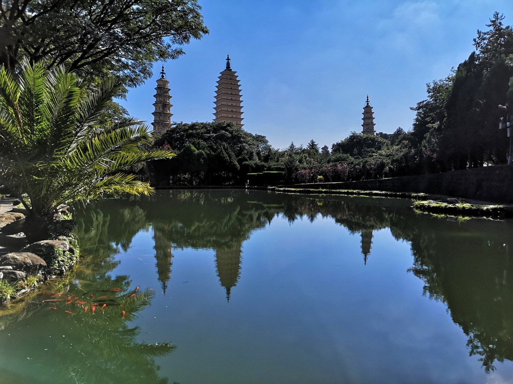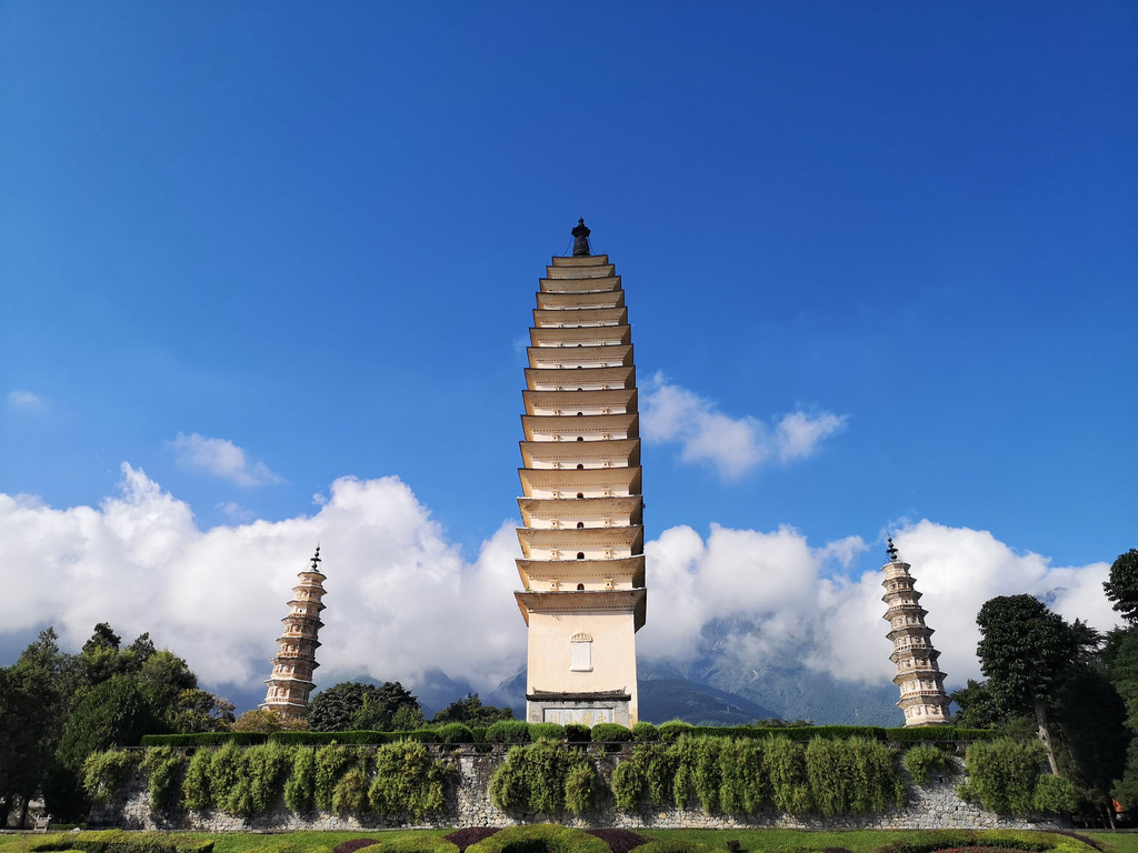 大理崇圣寺三塔:被称为大理古文化的象征,三塔的主塔名叫千寻塔,高69.13米,为方形16层密檐式塔,与西安大小雁塔同是唐代的典型建筑。
