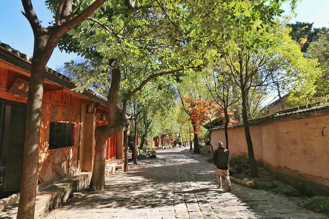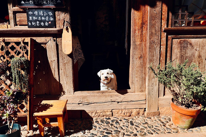 行走在沙溪古镇里,踏在不太平整的的青石板路上,穿着当地民族服饰的白族老人来回穿梭于街口,老大爷坐在回廊下眼里满是沧桑,这一刻宛如进入了另一个世界,回过神才懂得原来生活还可以过的如此的慢。走走停停,在巷子里。镇上的小狗们都倚在门口,阳光透过树叶散落在地上,游人走在这座遗世独立的古镇里,大理就是这样的。