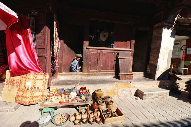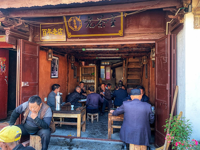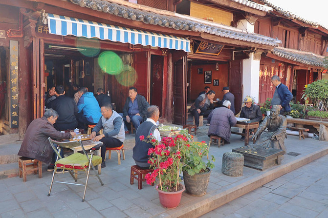 随便进一家茶馆,一杯茶只要3块钱,就可以坐在街上,晒太阳,喝热茶,享受片刻的宁静。耸人听闻的巍山古城商业气氛不重,街边的店主和来往的邻居打招呼,随意谈笑,三两成群的老人围着小方桌下棋聊天。