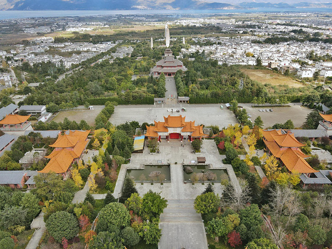 绕过三塔,沿着中轴线往里走,沿路可在文物陈列馆看维修三塔的过程中发掘出土的南诏、大理国文物,在钟楼看重达16吨的南诏建极大钟,在雨铜观音殿看雨铜观音,最后便可来到崇圣寺。