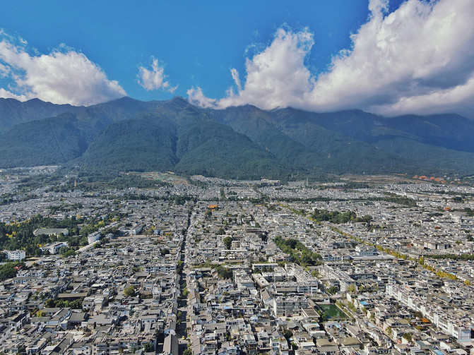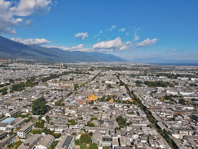 在古城飞个无人机,可以把古城全景都尽收眼底。古城其历史可追溯至唐天宝年间,南诏王阁逻凤筑的羊苴咩城,为其新都。