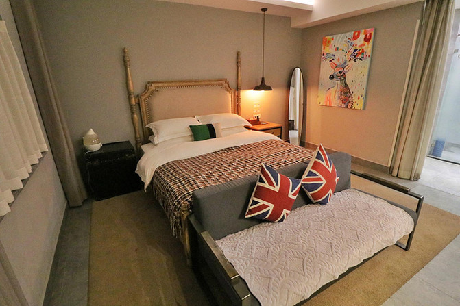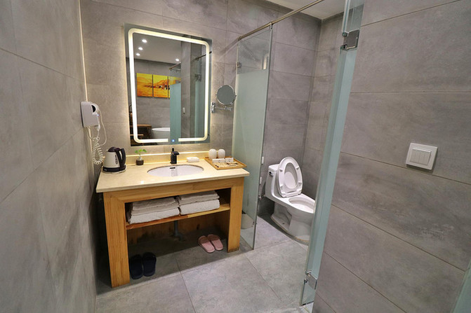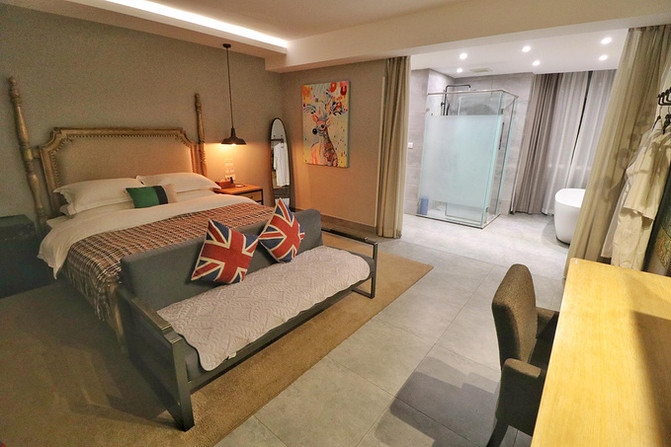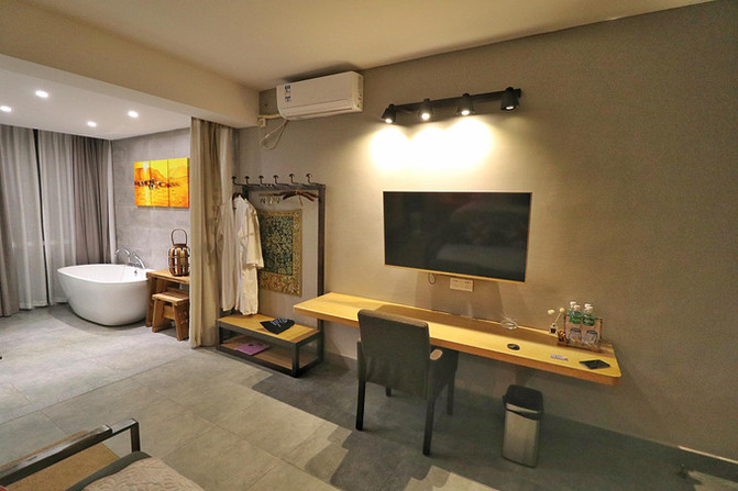 我们的房间在三楼,住的是豪华大床房。房间里是简约带现代风的设计,很宽敞。