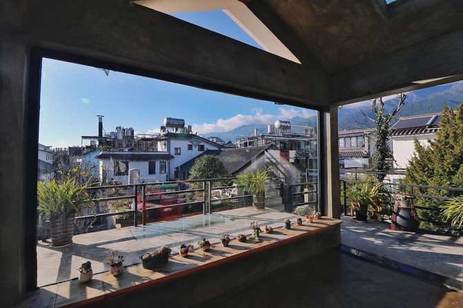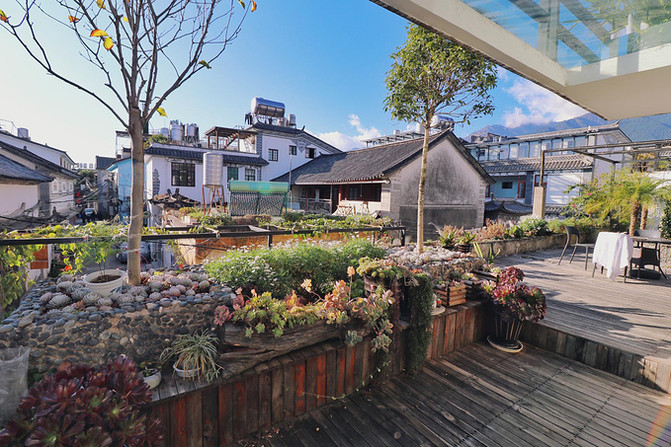 餐厅门口是古色古香的建筑风格,有两层楼,二楼的卡座还是很有感觉的。这里可以看到古城的景色还能望见远处的苍山。