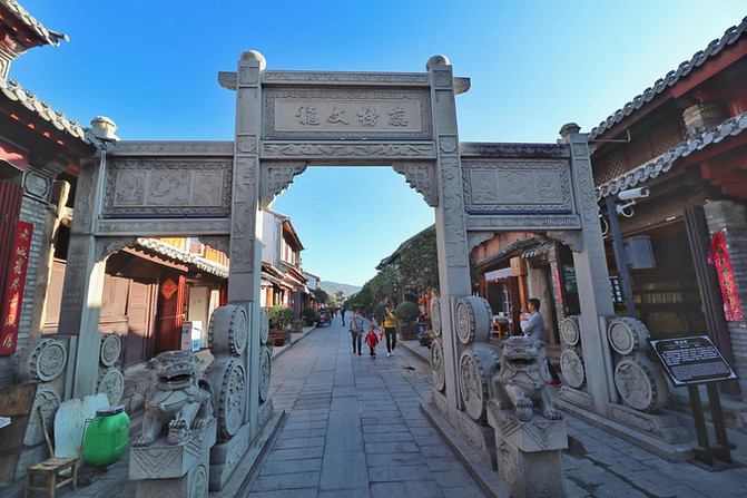 喜洲古镇位于大理市北部,西倚苍山,东临洱海,隋唐时期称"大厘城",是南诏时期"十睑之一";又是电影《五朵金花》的故乡,也是云南省著名的历史文化名镇和重点侨乡之一,是一个有着一千多年历史的白族历史文化名镇。