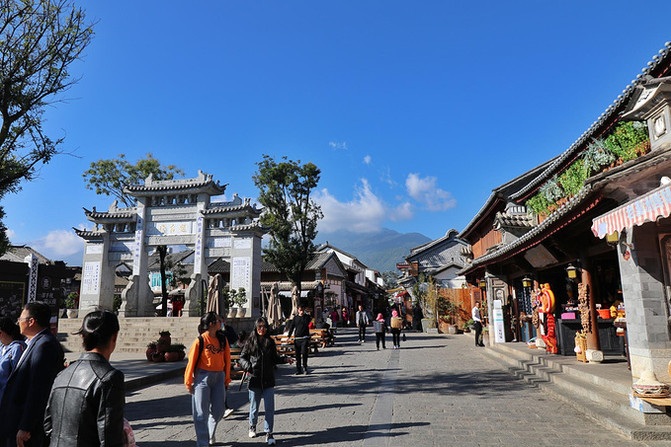 在古城,白天你可以逛逛复兴路,复兴路是古城的一条步行街,街两边有众多店铺,经营大理石雕刻、民族服饰和当地特色食品等当地特产。在各色店铺间穿行流连,可以淘些有民族特色的小东西,累了饿了,路边的小吃店也能吃到有特色的当地小吃。