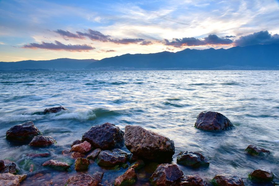 洱海月,那是对傍晚洱海时光的一种描述,洱海是大理最美的风景,平静的海面,蓝天白云照射下就是人间难得的仙境。有人说,时光是岁月里最美的见证,一切艺术都来源于生活,旅行是岁月留下的痕迹,你我都只不过是旅途中的匆匆过客。逃离浮华的喧嚣,去寻找属于自己的诗和远方!洱海的浪漫,洱海的宁静,洱海中的海鸥,洱海旁的邂逅...这都是属于洱海的独特风光。许多人在洱海中会迷失自己,也会找到自己,都是属于洱海的柔软时光。洱海位于苍山和大理坝子之间,在大理市下关,共有三岛、四洲、五湖、九曲,在下关镇的洱海公园可以乘船游览洱海风光。游逛洱海最佳时间是在下午3点以后,那个时候的阳光并不是很辣,可以选择骑行环绕,也可以租车游逛整个洱海一圈。累了就找个地方休息休息,拍拍照。喜欢摄影的朋友们可以在傍晚时分选择取景,十分美丽。游逛洱海最重要的就是心境,让自己变得慢下来,细细的去品味属于洱海的时光,感受生活的美。邂逅洱海,其实最重要的是邂逅最真实的自己吧。最佳的旅游季节:春季和冬季。温馨提示:洱海的风会比较大,需要注意保暖。
