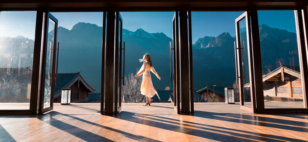 其实看玉龙雪山不要一定要登山,隐于雪山脚下的隐奢逸境,在璞修的房间内就可以独享雪山景观。
