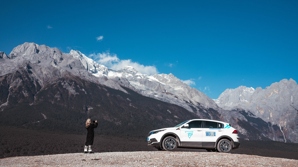 结束在璞修三天两晚的避世隐修,我们自驾离开酒店,在门口的停车场驻足欣赏玉龙雪山全景。