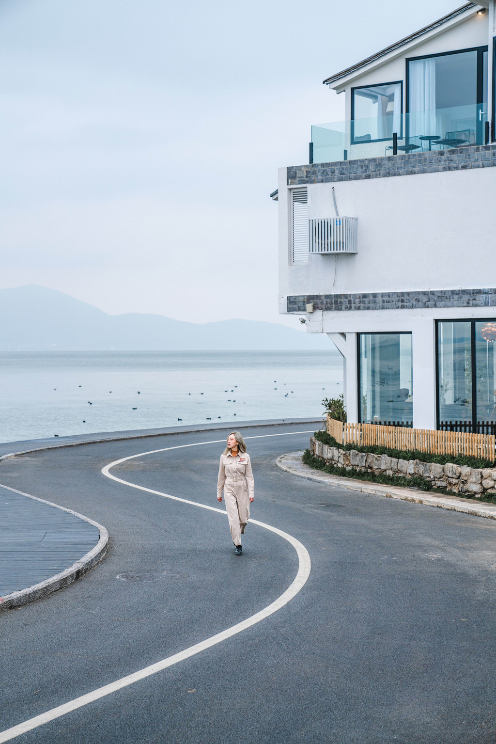 最近大理洱海边爆火的新晋打卡地绝对要数磻溪村附近的洱海生态廊道,也就是俗称的S弯,很多人称之为大理“小镰仓”。可以导航至大理洱朵花园海景酒店,弯道旁边非常明显的白色房子就是这里了。车不允许开进新修的生态廊道,自驾到附近找地方停车就可以。
