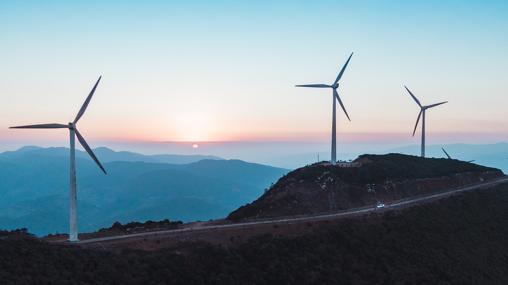 上山途中风景就足够好,不过最美的还是在山顶附近,苍山洱海一览无余,巨大的风车散落在山间。