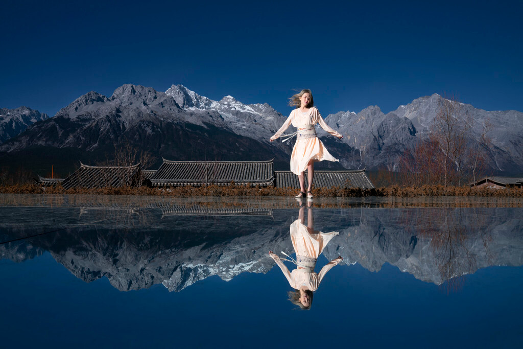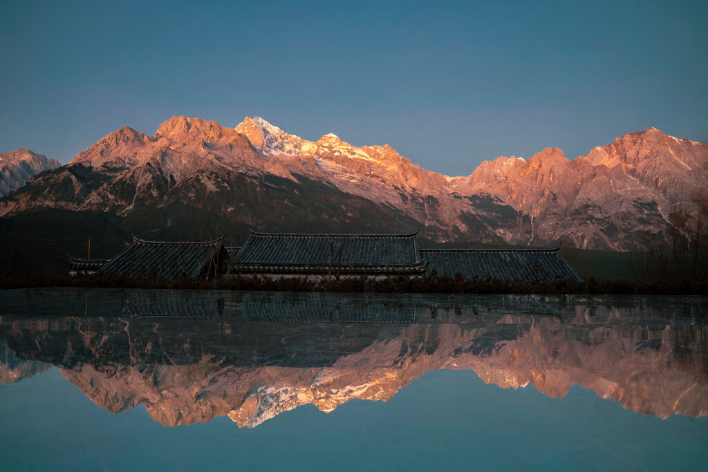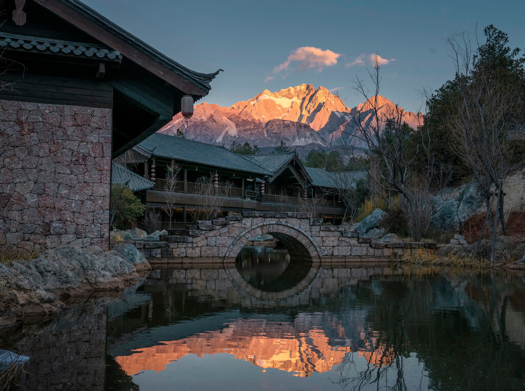 冬季正是看玉龙雪山的好季节,几乎每个早晨都能看到日照金山,运气好的话遇到下雪,仿佛置身仙境一般。清晨在天空之境看日照金山,这里是最佳拍摄雪山倒影机位。如果遇到无风的天气,瑜伽房旁边的水池也会形成平静的倒影。
