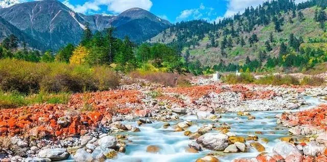 鲜红色的红石在山间像一条丝带
