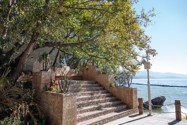 沿着石阶向上,靠在石墙上,看阳光照耀下的洱海,美轮美奂;挺波浪冲击着礁石,好似也把心中的烦忧冲洗而去。