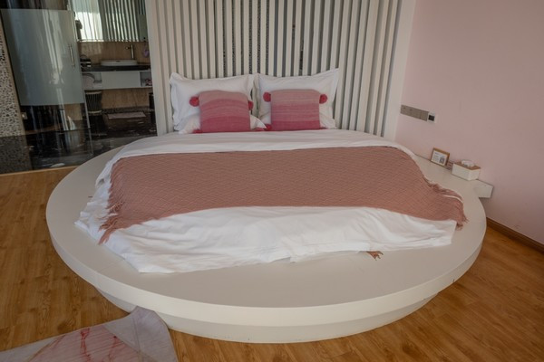 民宿内有一块区域特令我心水,就是咖啡厅后面的一个下沉式空间,设置了一张下凹的圆形沙发,非常适合大家聊天聚会,或一家人、或三五好友,舒服地靠坐在沙发上,聊聊家长里短,聊聊人生,聊聊未来……