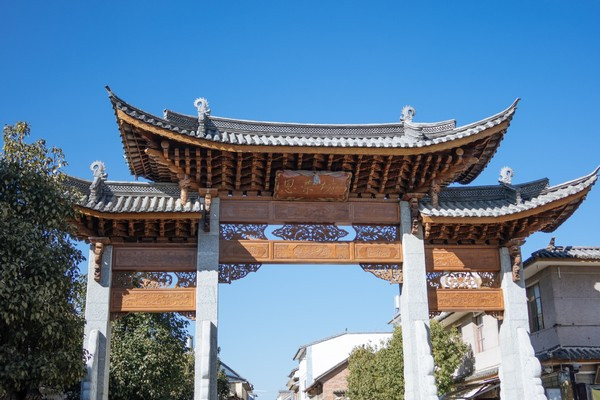 “进到镇里仿佛是到了英国剑桥。”干净的石板路,雕梁画栋的白族宅子,大气典雅的飞檐斗拱,精雕细琢的花纹石雕……无一不在彰显着喜洲的千年历史。