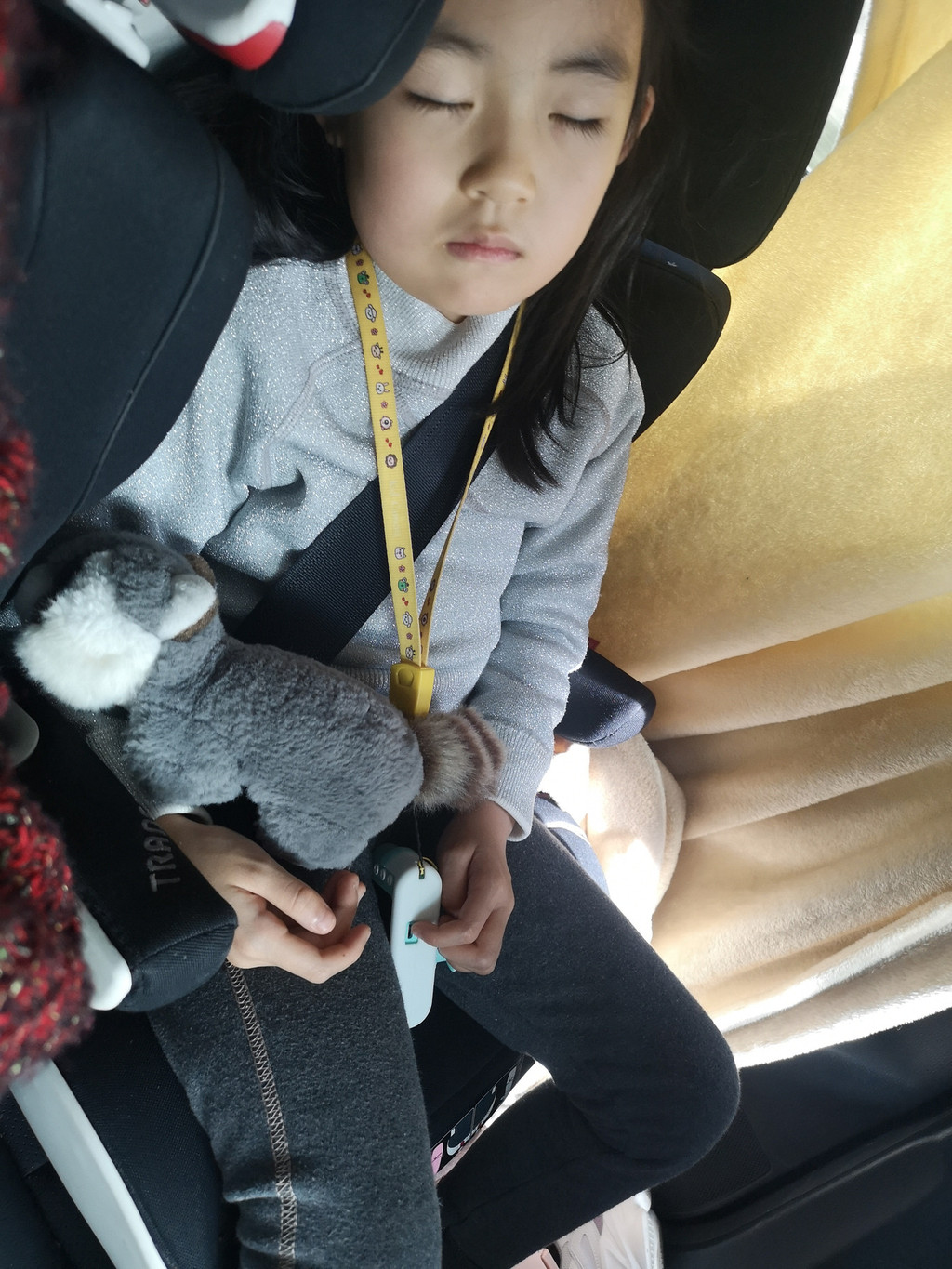 蜜桃——解闷逗乐小能手,路途上没有一声抱怨,乖乖坐在安全座椅上吃吃睡睡,还能帮妈妈找东西。
