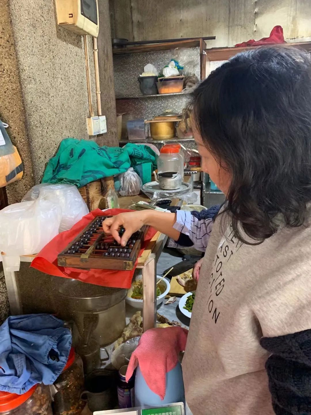 结账时候,老板娘打了个算盘,170块。她的娘已经75岁,笑着在调米线的酱料,牙好白。