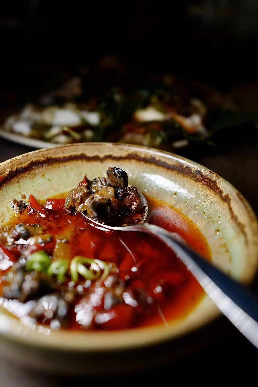 猪肝酢是这儿一种特别传统的辣酱,吃到的酸味可不用醋,白族老妈妈非得用木瓜提酸不可,有果香。这里的烧烤蘸碟,白族人传统用照水梅做的梅子醋,平衡各色香辛,所以猛辣也难上火。这就是智慧。