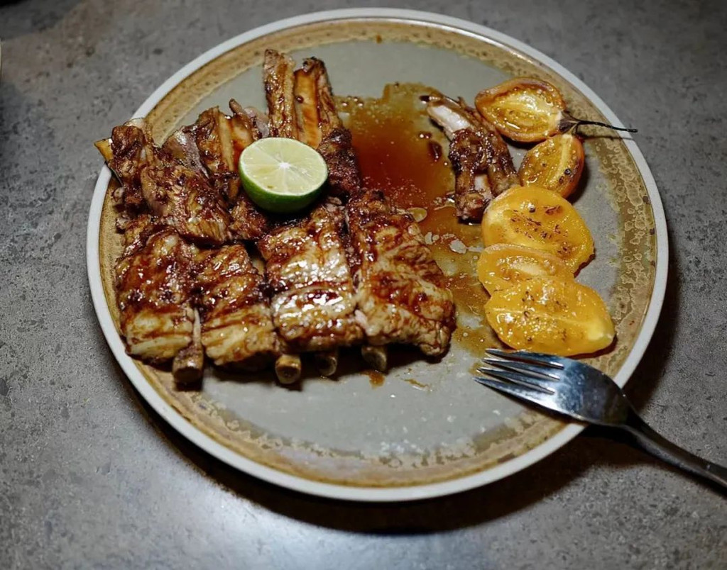 我心里这样想着,还是乖乖拿伊比利亚猪肋排加酸梅甜酱与树番茄配咖啡。
