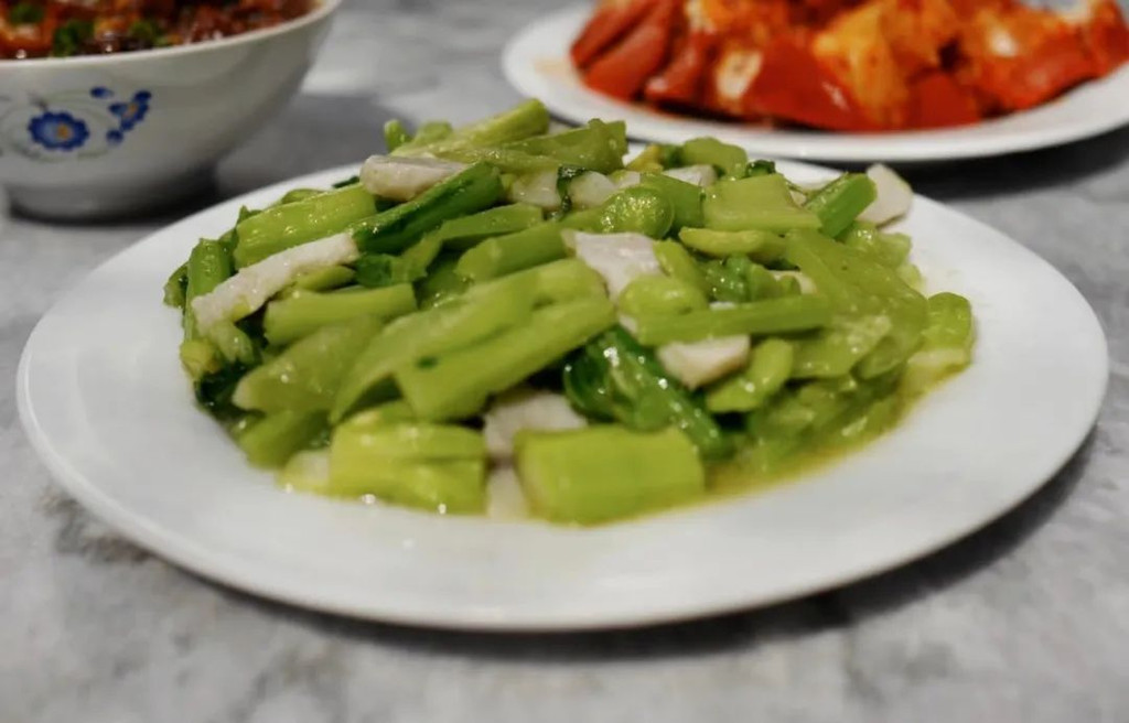 冻鱼,满口鲜辣果冻香。苦菜与芋艿、豆瓣混炒,清爽又满足。