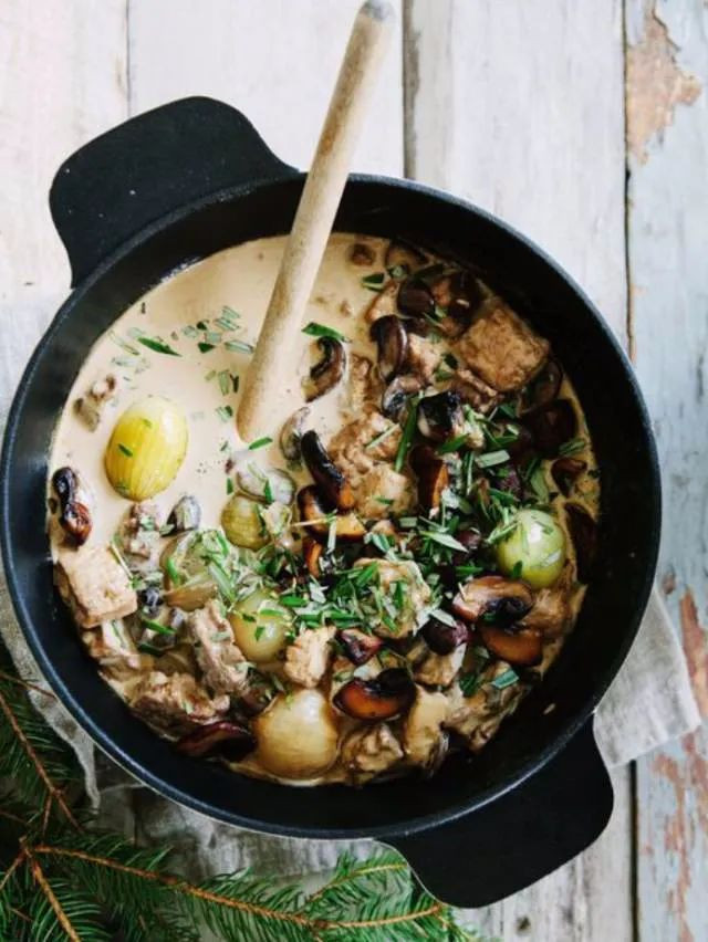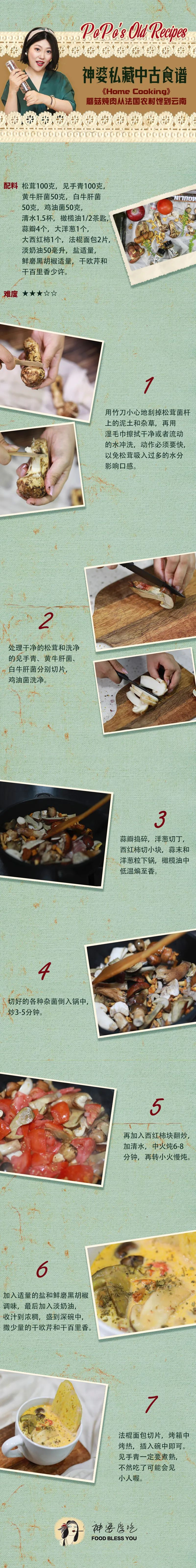 这次借鉴了《Home Cooking》一书中猎人式蘑菇炖肉配炸面包的食谱,这本书的 菜谱原载在美国美食协会杂志上。但所用的菌菇全部换成了从云南空运来的珍贵菌子们。