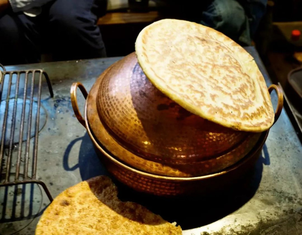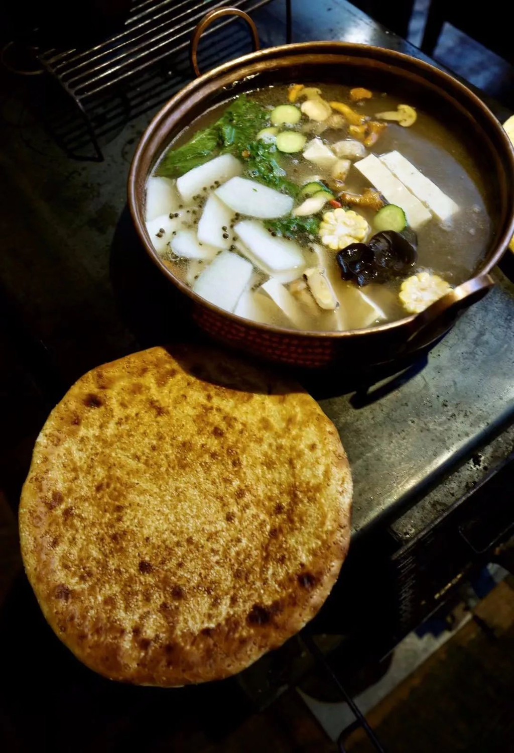 牛羊跑过阿干镇404的手铸大铜锅,我感叹羊肉汤配烘脆的新疆馕一流。