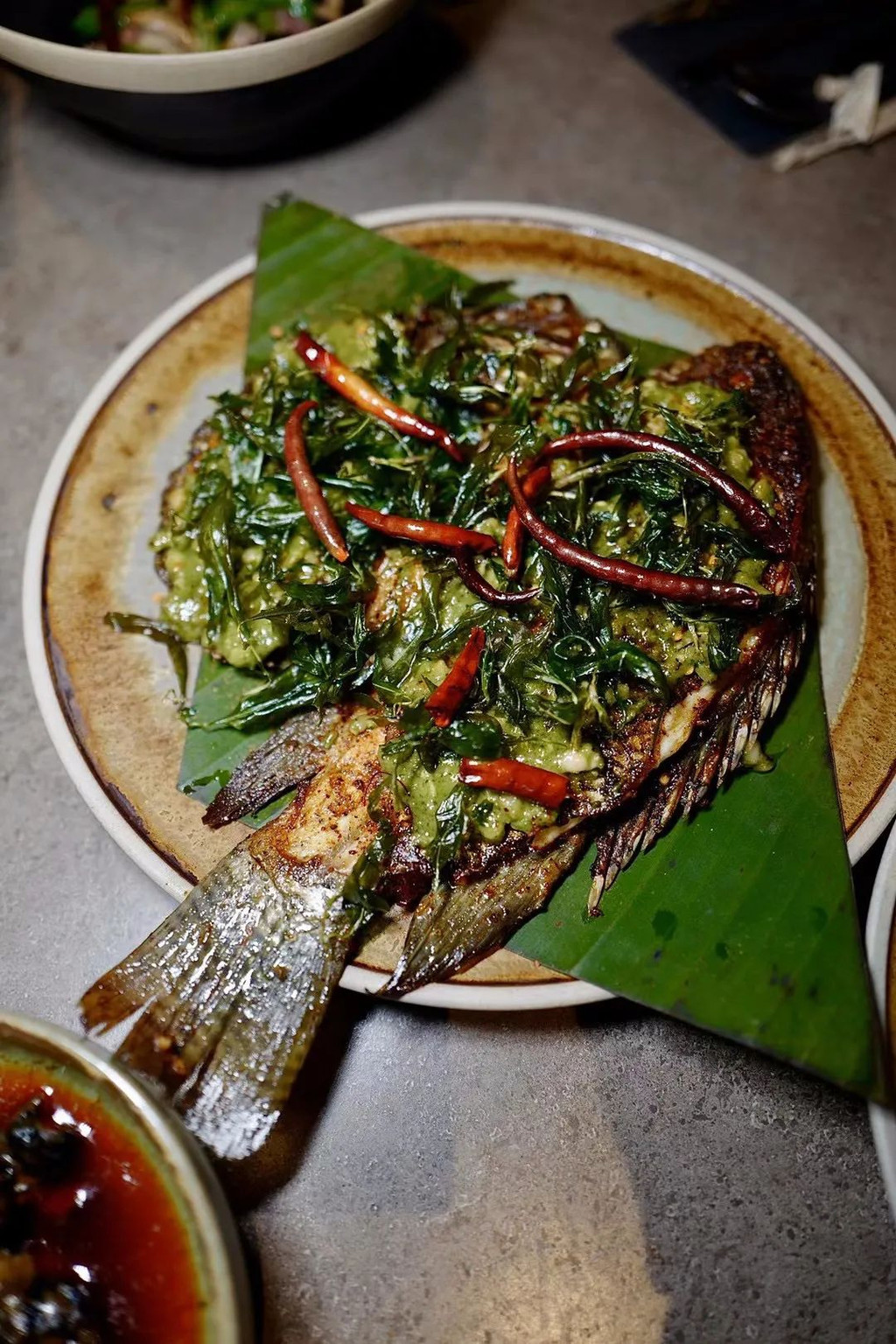 双廊镇一方好水土,忍不住在这爱上水香菜青酱,我自己做的罗勒酱配不了烤罗非鱼与南瓜。