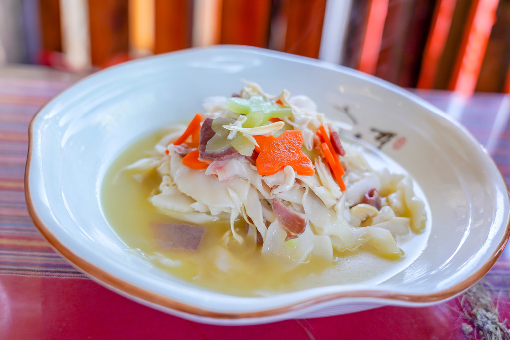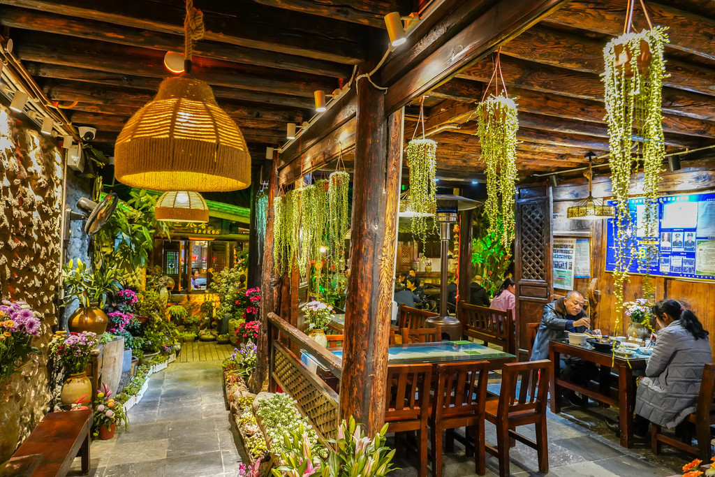 进门后就是一个大大的院子,很有年代感,听老板娘介绍是他们家祖传的,世代经营,庭院布置的很古朴,很有当地特色,院子里到处都是植物,生机盎然,在这么美好的环境里享受美食,真是超级惬意!