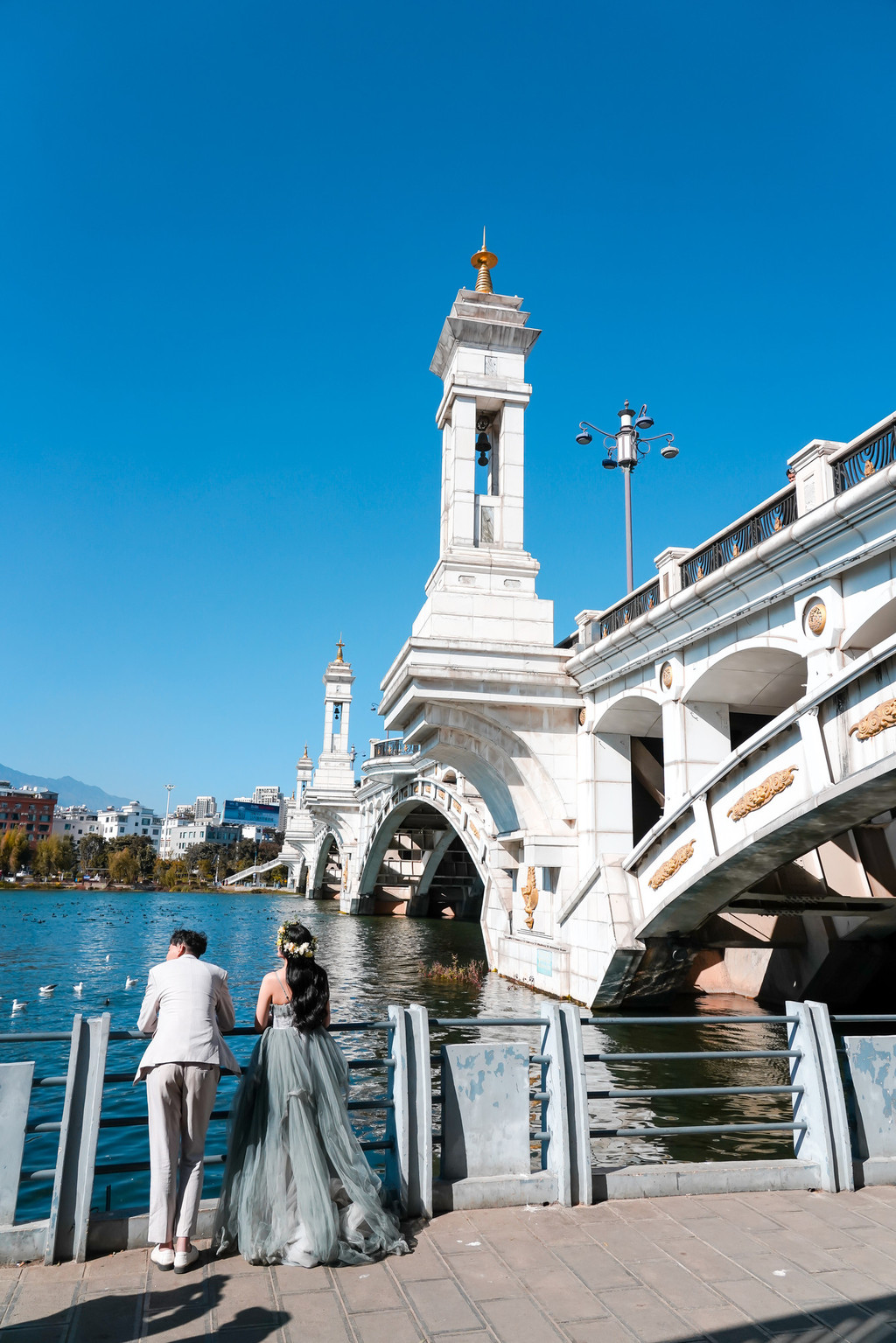 桥上、桥下的河边,从桥上走到河边的楼梯上,再走远一点,坐在河边的椅子上,以桥为背景,拍照都非常好看?